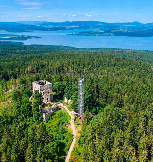 Vítkův hrádek nabízí unikátní panoramatický výhled na Lipno, Šumavu a za dobré viditelnosti i na rakouské Alpy. S námi se tam dostanete včas, bezpečně a v maximálním pohodlí.